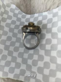 Antique Vintage Large 925 Sterling Silver Ring with Natural Rubies and CZ