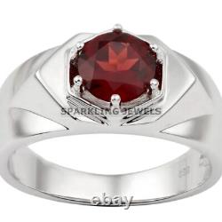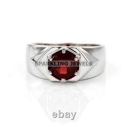 Calibrated Garnet Round Cut With 925 Sterling Silver Ring For Men #C249