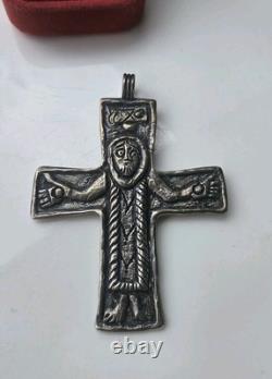 The pendant is made of high-quality sterling silver, ensuring that it will remain a cherished piece for many years to come. The pendant's style is perfect for any occasion, whether you're dressing up for a special event or adding a touch of elegance to your everyday look. The cross design is a classic symbol that will always be in style, making this pendant a great investment piece. Don't miss out on the opportunity to add this beautiful vintage Moravia cross pendant to your collection today!