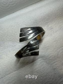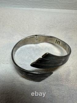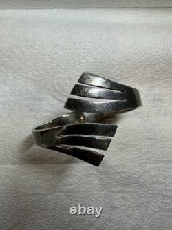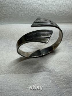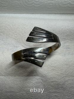 Vintage Mexican sterling silver bypass bracelet! This particular bracelet showcases the modernist aesthetic with its geometric shapes and open design. The silversmith's mark is present.