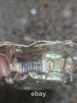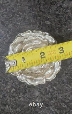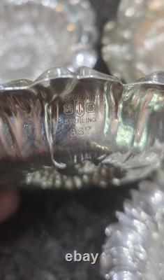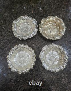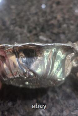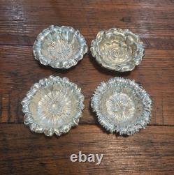 Le produit est un ensemble de quatre coupes à noix florales vintage en argent sterling Gorham, fabriquées en argent sterling de haute qualité avec un magnifique design floral. Ces coupes sont parfaites pour servir des noix ou des bonbons, ajoutant une touche d'élégance à toute table à manger ou à toute pause café. Fabriquées par la prestigieuse marque Gorham, connue pour son savoir-faire de qualité, ces coupes seront certainement un ajout précieux à toute collection d'antiques ou d'argent.