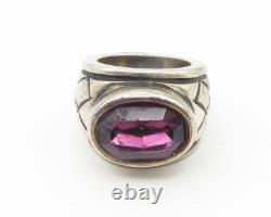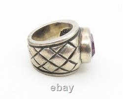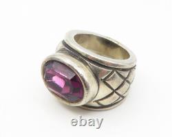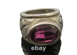 Bague cocktail vintage en améthyste croix gravée en argent sterling 925 taille 5 RG11219