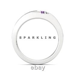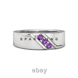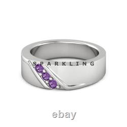 Bague en argent sterling 925 avec améthyste taillée en rond pour homme #D514