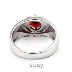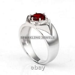 Bague en argent sterling 925 avec garnet calibré taillé rond pour hommes #C249