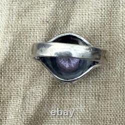 Cette bague vintage en argent sterling ornée de marcassite présente une belle pierre en pâte d'alexandrite avec une teinte violette. Le design rétro avec un filigrane complexe et une monture à griffes met en valeur l'élégance et la beauté de ce bijou fin pour femmes. La bague de taille 8.5 est fabriquée en argent 925 et ornée de pierres secondaires en marcassite, ce qui en fait un ajout éblouissant à toute collection de bijoux pour ceux qui apprécient les designs classiques et intemporels.