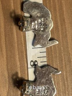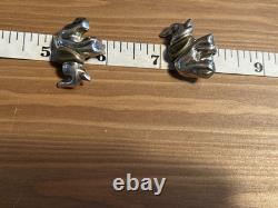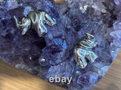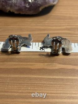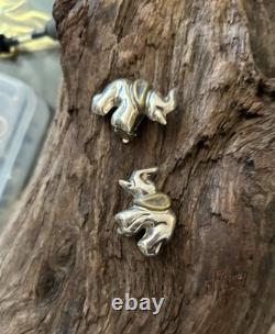 Ajoutez une touche de charme artistique et audacieux à votre collection de bijoux avec ces boucles d'oreilles clip-on en argent sterling vintage représentant des éléphants, provenant de Taxco, au Mexique. Avec un design moderne et abstrait, ces boucles d'oreilles mettent en valeur l'expertise artisanale et l'esprit ludique de l'argenterie de Taxco des années 50. Fabriquées en argent sterling 925 massif, chaque boucle d'oreille est marquée "Mexico" et "925" au dos. Le design abstrait unique de l'éléphant est léger mais robuste, parfait pour les collectionneurs, les amoureux des animaux ou ceux qui apprécient l'art portable.