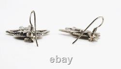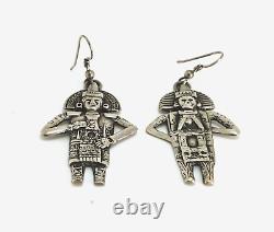 Boucles d'oreilles figuratives vintage en argent sterling Quetzlcoatl Seigneur de la Vie et de la Mort. Ces boucles d'oreilles figuratives vintage en argent sterling Quetzlcoatl Seigneur de la Vie et de la Mort mesurent 1 1/16" de long sans inclure les fils arrière et 1 1/16" de large. Elles sont marquées LUD Sterling. Elles pèsent un total de 20,2 g. Elles sont en très bon état et seraient un merveilleux ajout à votre collection !