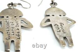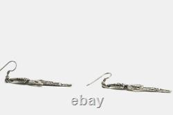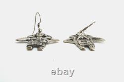 Boucles d'oreilles figuratives en argent sterling vintage Quetzlcoatl Seigneur de la Vie et de la Mort, LUD