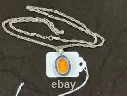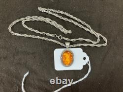 Chaîne en argent sterling vintage 22 avec pendentif en camée léopard en ambre taillé en revers en argent sterling