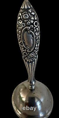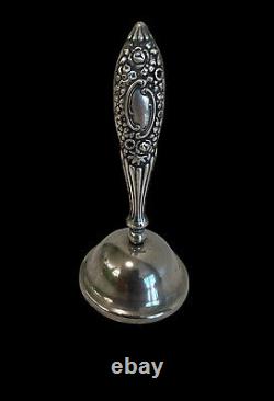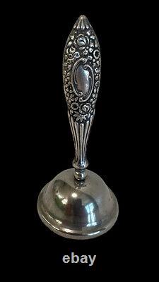 Cette cloche de dîner vintage est une belle addition à toute collection. Fabriquée en argent sterling, elle présente un magnifique motif de rose dans un style Art Nouveau. Pesant 31 grammes, cette cloche d'après les années 1940 possède un joli motif floral qui ne manquera pas d'impressionner. Son statut sans marque ajoute seulement au charme unique de cette pièce.