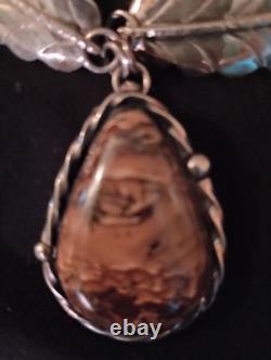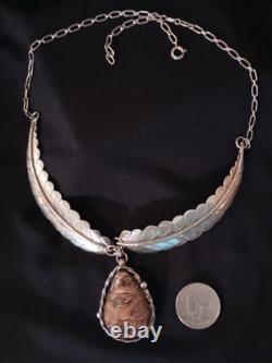 Ce collier choker en argent sterling 925 fait main avec pierre naturelle de style vintage Navajo présente un pendentif en forme de goutte avec une pierre principale en turquoise brune. Il incarne le style ethnique et régional des Amérindiens.