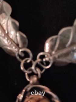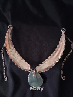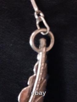 Avec son matériau de pierre précieuse naturelle et sa construction en métal argenté, ce collier est une belle représentation de l'affiliation tribale et du savoir-faire Navajo. Les seules choses qui ne sont pas en argent sterling 925 sont le fermoir et les anneaux qui sont attachés aux plumes. Une belle pièce de collection !