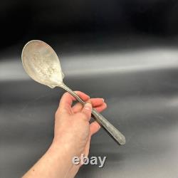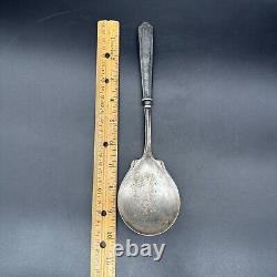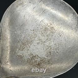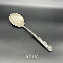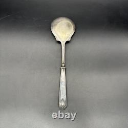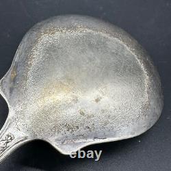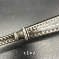 Présente un design de poignée orné avec des détails en relief complexes. Marquée "Sterling" pour l'authenticité. Idéale pour servir ou afficher comme pièce de collection. Pèse plus de 4 onces.Quelques ternissures et rayures profondes à la surface, cohérentes avec l'âge et l'utilisation. Veuillez voir les photos pour la description complète.