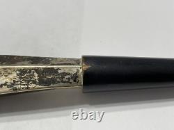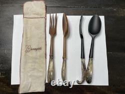 Certains d'entre eux indiquent "fabriqué en France". Les manches mesurent 4 pouces en argent sterling. La cuillère et les fourchettes mesurent 11 pouces de long. Marqué "sterling" sur les manches.