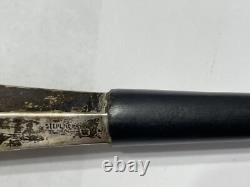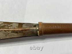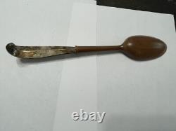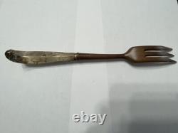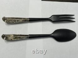 Ensemble de service à salade en bois avec fourchette et cuillère à manche en argent sterling vintage BLOOMINGDALE. N'a pas été nettoyé, dans un état vintage.