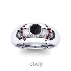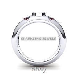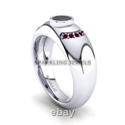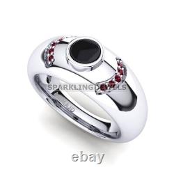 Gemme en Grenat Taille Ronde avec Bague en Argent Sterling 925 pour Hommes #D114