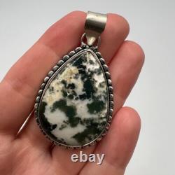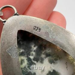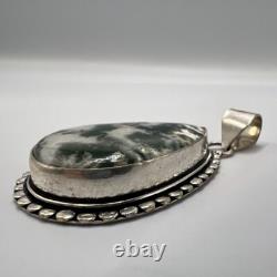 Grand pendentif en argent sterling 925 vintage pour femmes, en pierre de dendroagat, fabriqué en Israël. Très bon état comme sur les photos.