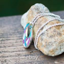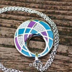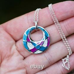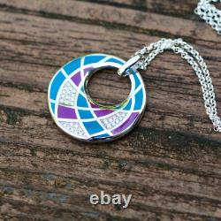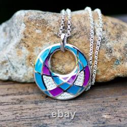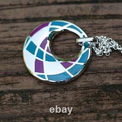 Trop de copies bon marché de mon travail circulent. Design géométrique coloré en violet et teal. Chaîne en argent sterling 925 de 18 pouces.