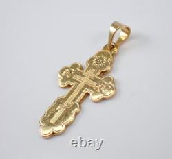 Pendentif croix vintage unisexe plaqué or jaune 14 carats chaîne de 18 pouces en argent sterling 925