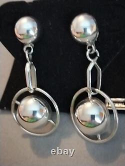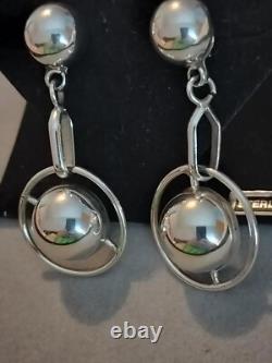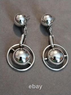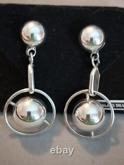 Fièrement fabriquées au Mexique, ces boucles d'oreilles sont un choix exquis pour ceux qui apprécient la beauté de l'argent sterling dépouillé. Ces boucles d'oreilles sont en excellent état.