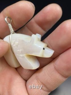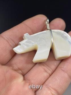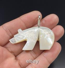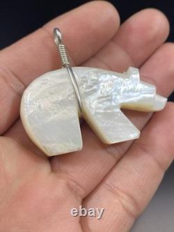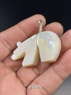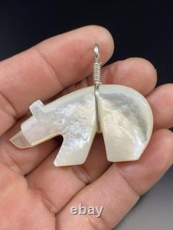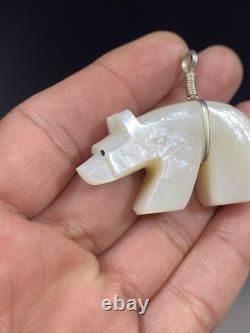 VTG Amérindien Argent Sterling Grand Pendentif Ours Sculpté en MOP (Nacre) Pèse 22,6 Grammes sur ma Balance. Mesure environ 2" x 1" au point le plus large. L'article de ce lot est en état d'usage. Il est ancien, donc présente quelques signes d'usure et de décoloration dus à l'âge et à une utilisation quotidienne.